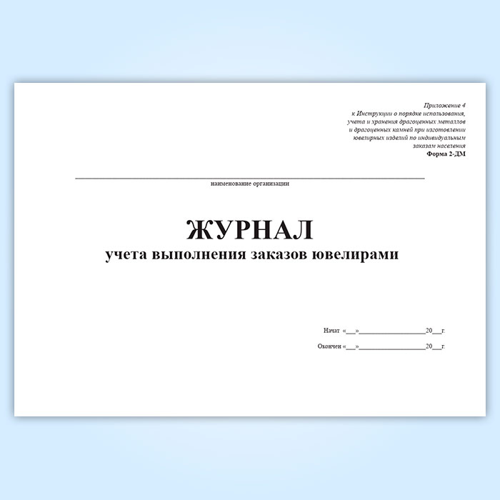 Журнал учета выполнения заказов ювелирами (форма 2-ДМ) в Улан-Удэ купить