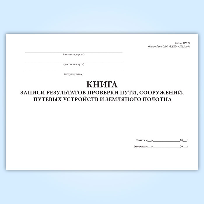 Книга записи результатов проверки пути, сооружений, путевых устройств и земляного полотна (форма ПУ-28) в Улан-Удэ купить
