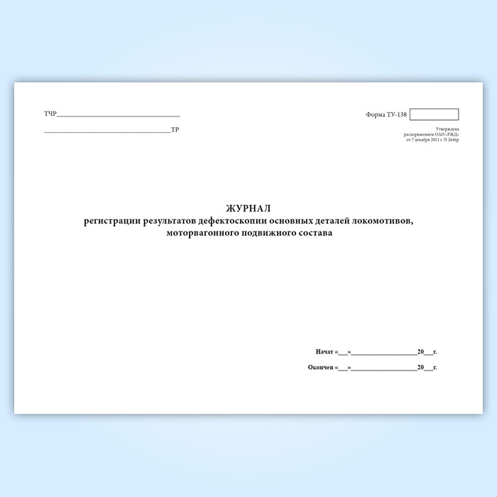 Журнал регистрации результатов дефектоскопии основных деталей локомотивов, моторвагонного подвижного состава (форма ТУ-138) в Улан-Удэ купить