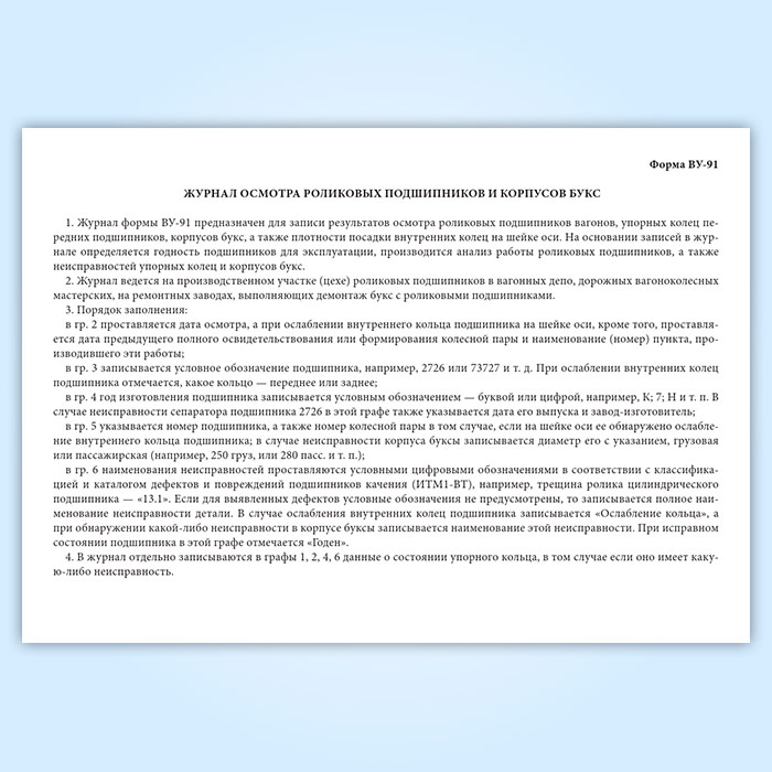 Журнал осмотра роликовых подшипников и корпусов букс (форма ВУ-91) в Улан-Удэ купить