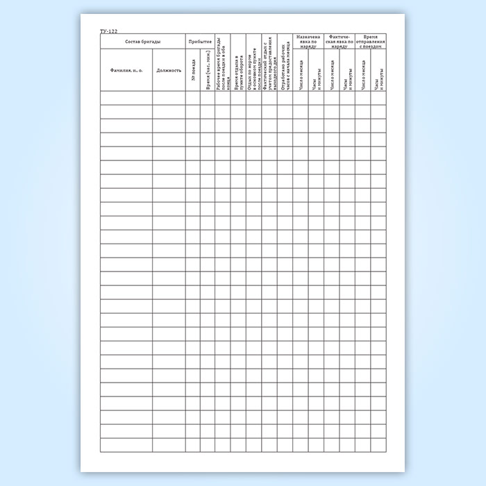 Книга нарядов локомотивных бригад и учета нарушений (срывов) безвызывной системы явок локомотивных бригад на работу и именных расписаний (форма ТУ-122) в Улан-Удэ купить