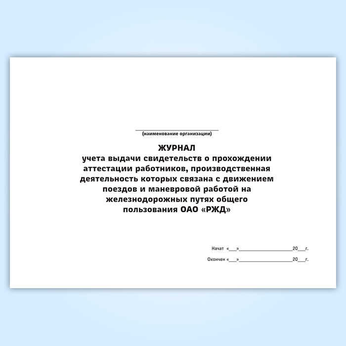 Журнал учета выдачи свидетельств о прохождении аттестации работников, производственная деятельность которых связана с движением поездов и маневровой работой на железнодорожных путях общего пользования ОАО «РЖД» в Улан-Удэ купить