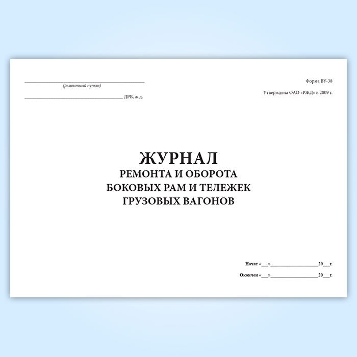 Журнал ремонта и оборота боковых рам и тележек грузовых вагонов (форма ВУ-38) в Улан-Удэ купить