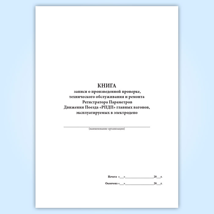 Книга записи о произведенной проверке, технического обслуживания и ремонта Регистратора Параметров Движения Поезда «РПДП» главных вагонов, эксплуатируемых в электродепо в Улан-Удэ купить