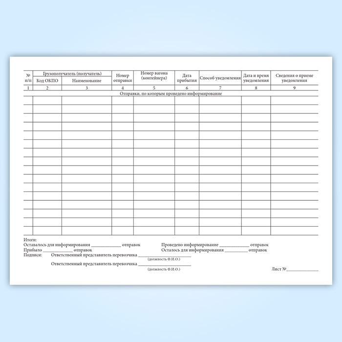 Книга уведомления о прибытии груза, порожнего грузового вагона (форма ГУ-6ВЦ/Э) в Улан-Удэ купить