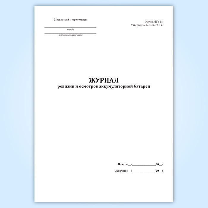 Журнал ревизий и осмотров аккумуляторной батареи (форма МУэ-18) в Улан-Удэ купить