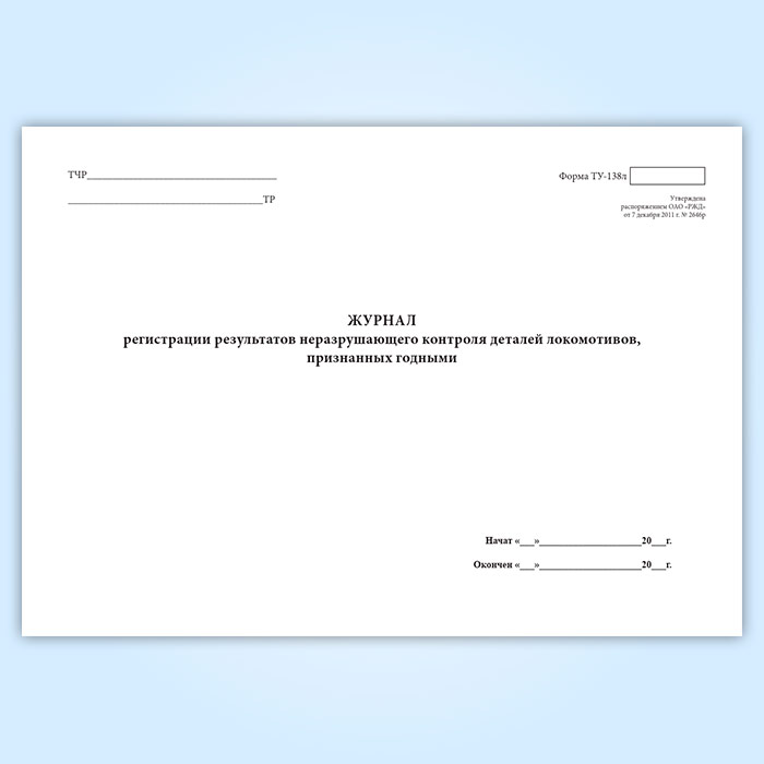 Журнал регистрации результатов неразрушающего контроля деталей локомотивов, признанных годными (форма ТУ-138л) в Улан-Удэ купить