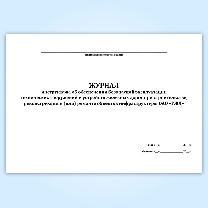 Журнал инструктажа об обеспечении безопасной эксплуатации технических сооружений и устройств железных дорог при строительстве, реконструкции и (или) ремонте объектов инфраструктуры ОАО «РЖД» в Улан-Удэ купить