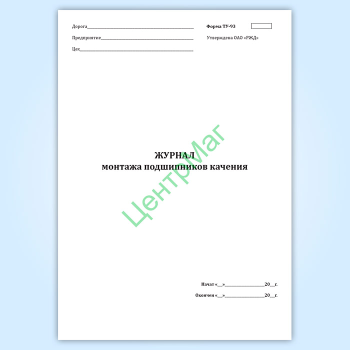 Журнал монтажа подшипников качения (форма ТУ-93) в Улан-Удэ купить