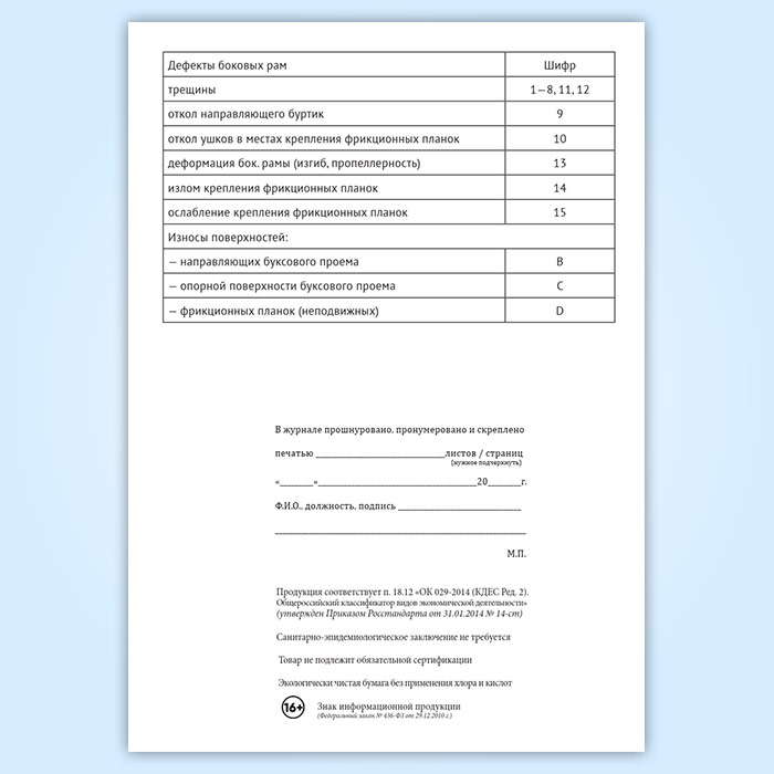 Журнал учета результатов осмотра и дефектоскопирования боковых рам тележек грузовых вагонов в Улан-Удэ купить