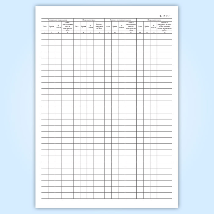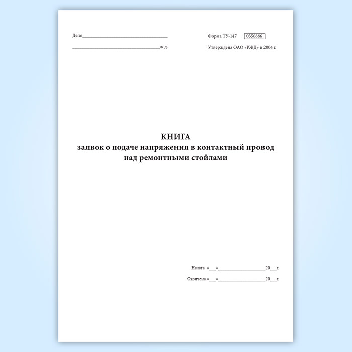 Книга заявок о подаче напряжения в контактный провод над ремонтными стойлами (форма ТУ-147) в Улан-Удэ купить