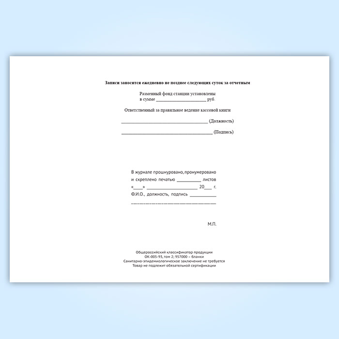 Вы получаете печатную продукцию прошнурованной и c местом для вашей печати в соответствии с действующими нормативными документами:
