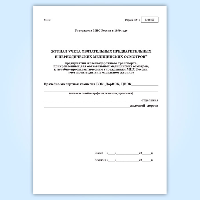 Журнал учета обязательных предварительных и периодических медицинских осмотров (форма НУ-1) в Улан-Удэ купить