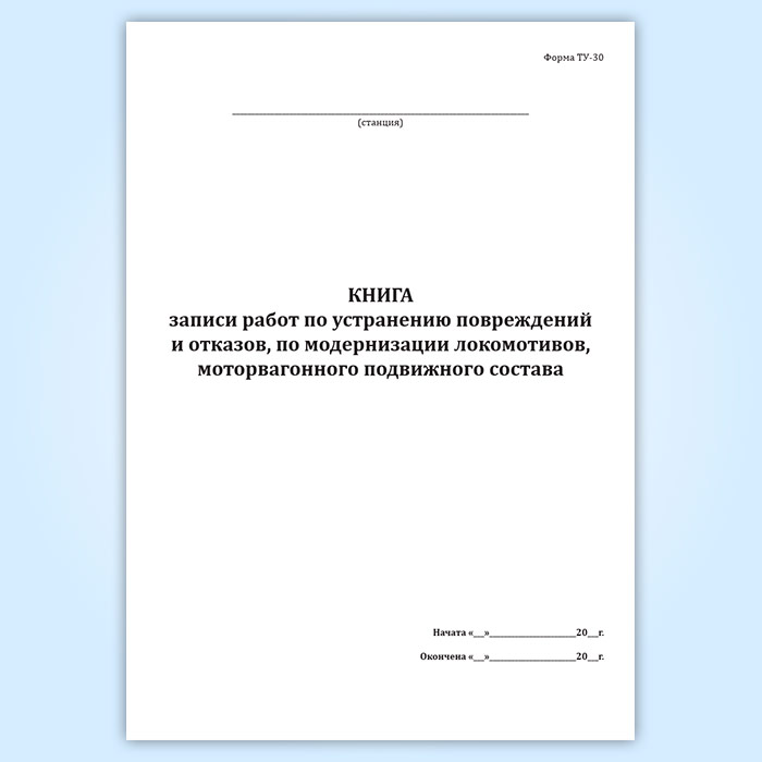 Книга записи работ по устранению повреждений и отказов, по модернизации локомотивов, моторвагонного подвижного состава (форма ТУ-30) в Улан-Удэ купить