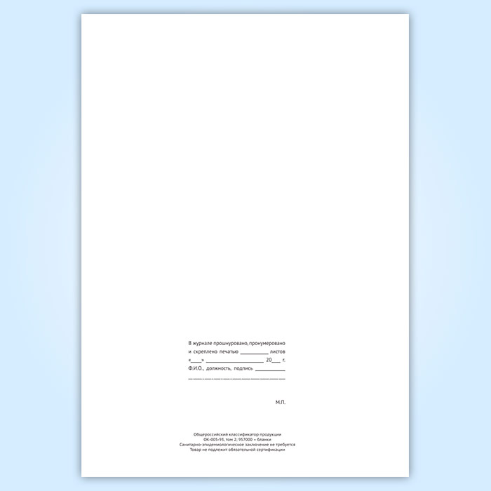 Вы получаете печатную продукцию прошнурованной и c местом для вашей печати в соответствии с действующими нормативными документами: