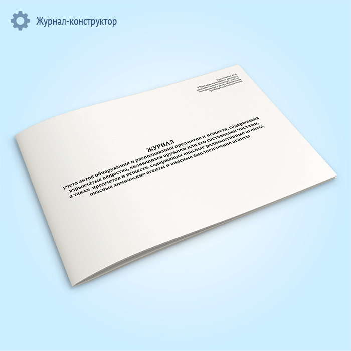 Журнал учета актов обнаружения и распознавания предметов и веществ, содержащих взрывчатые вещества, являющихся оружием или его составными частями, а также предметов и веществ, содержащих опасные радиоактивные агенты, опасные химические агенты и опасные биологические агенты в Улан-Удэ купить