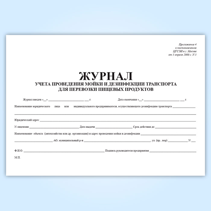 Журнал учета проведения мойки и дезинфекции транспорта для перевозки пищевых продуктов в Улан-Удэ купить