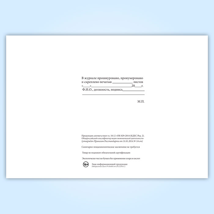 Вы получаете печатную продукцию прошнурованной и c местом для вашей печати в соответствии с действующими нормативными документами: