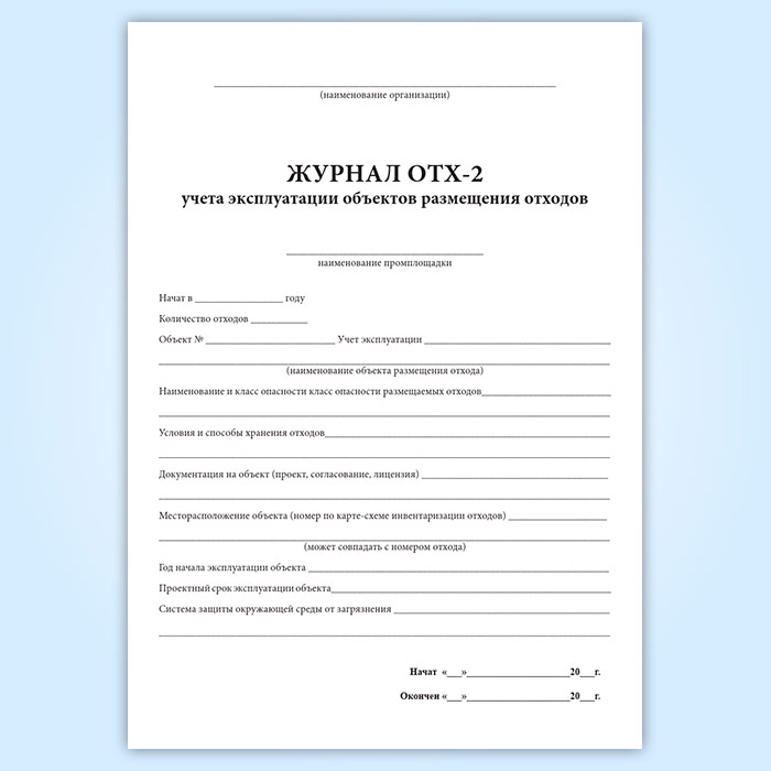 Журнал учета эксплуатации объектов размещения отходов ОТХ-2 в Улан-Удэ купить