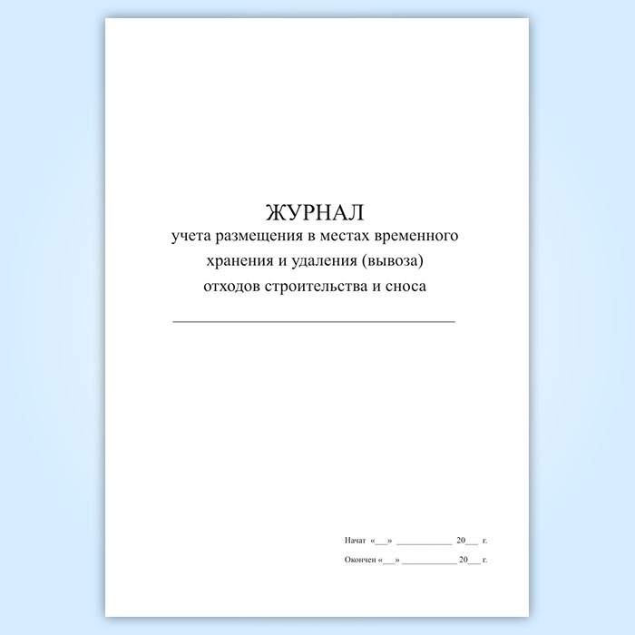 Журнал учета размещения в местах временного хранения и удаления (вывоза) отходов строительства и сноса в Улан-Удэ купить