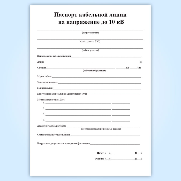 Паспорт кабельной линии на напряжение до 10 кВ в Улан-Удэ купить