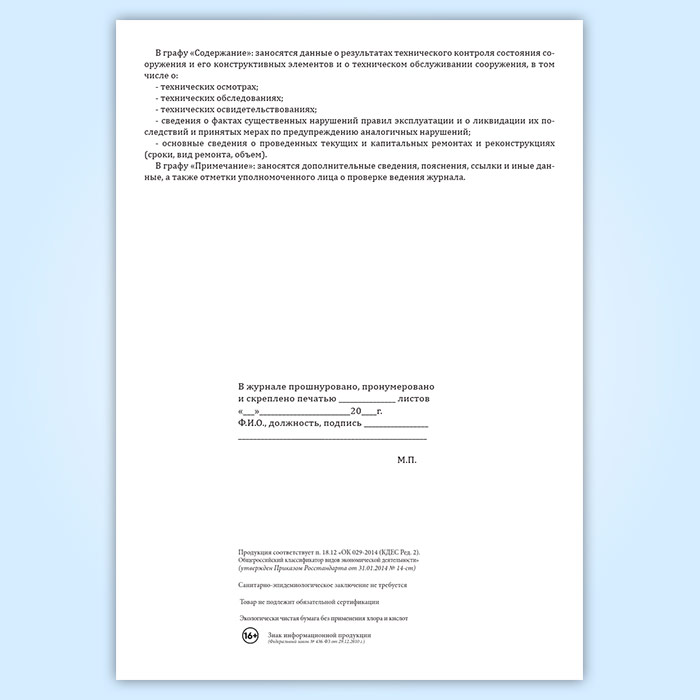Технический журнал по эксплуатации гидротехнического сооружения в Улан-Удэ купить