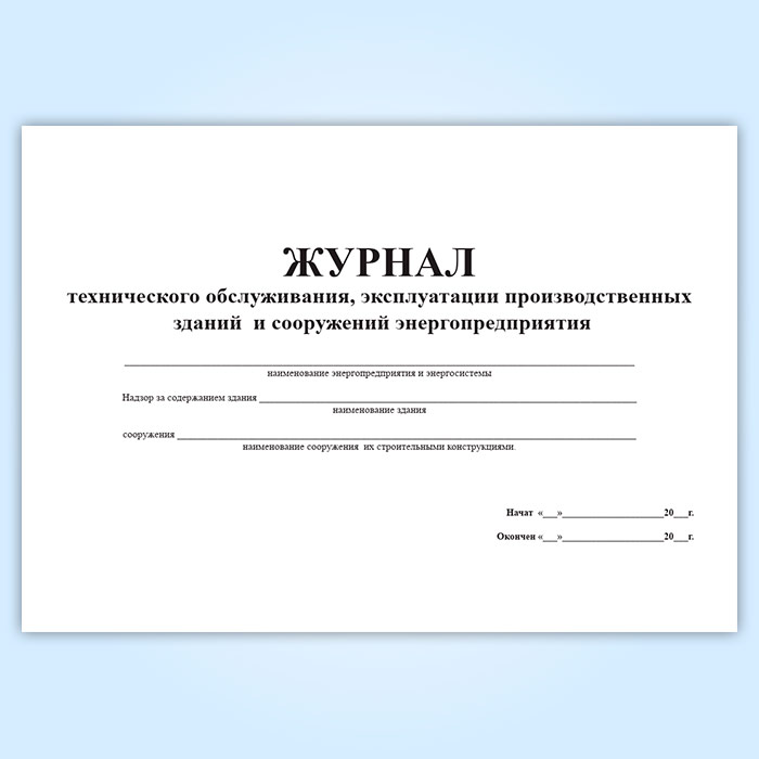 Журнал технического обслуживания, эксплуатации производственных зданий и сооружений энергопредприятия в Улан-Удэ купить