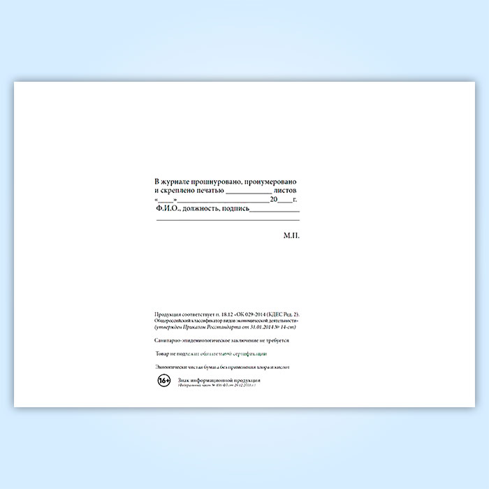 Вы получаете печатную продукцию прошнурованной и c местом для вашей печати в соответствии с действующими нормативными документами: