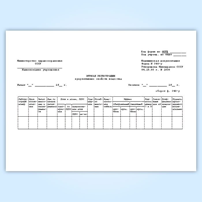 Журнал регистрации кумулятивных свойств вещества (форма № 340-у) в Улан-Удэ купить