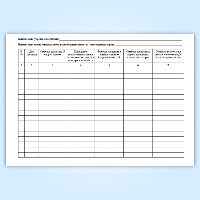 Журнал регистрации операций с использованными ампулами из-под наркотических средств и психотропных веществ у главной медицинской сестры стационарной медицинской организации в Улан-Удэ купить