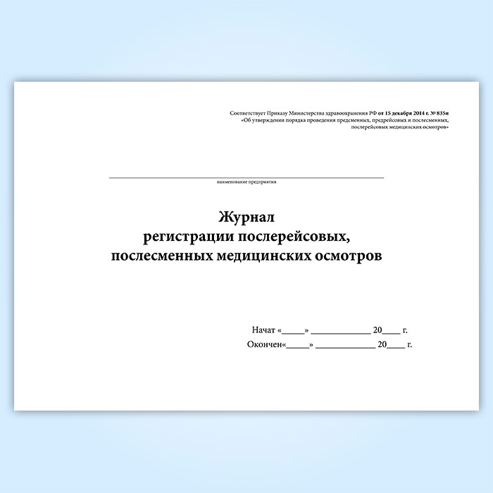 Журнал регистрации послерейсовых, послесменных медицинских осмотров в Улан-Удэ купить