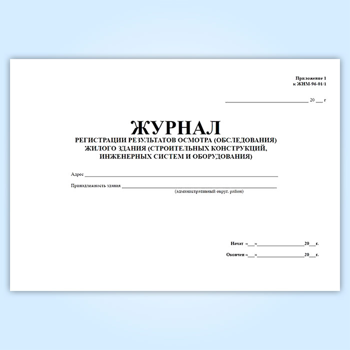 Журнал регистрации результатов осмотра (обследования) жилого здания (строительных конструкций, инженерных систем и оборудования). (Приложение к форме ЖНМ-96-01/1) в Улан-Удэ купить