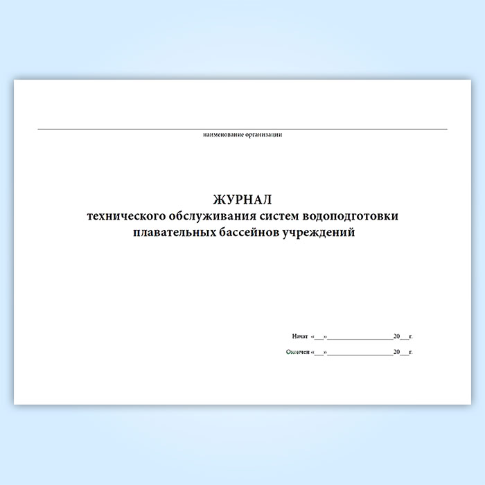 Журнал технического обслуживания систем водоподготовки плавательных бассейнов учреждений в Улан-Удэ купить