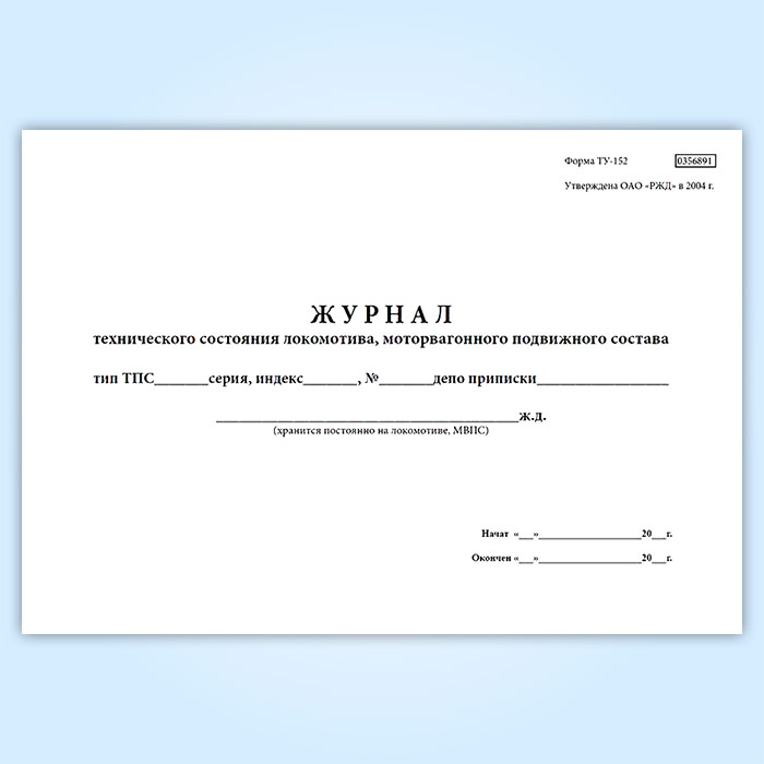 Журнал технического состояния локомотива, моторвагонного подвижного состава (форма № ТУ-152) в Улан-Удэ купить