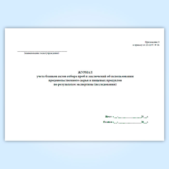 Журнал учета бланков отбора проб и заключений об использовании продовольственного сырья и пищевых продуктов в Улан-Удэ купить