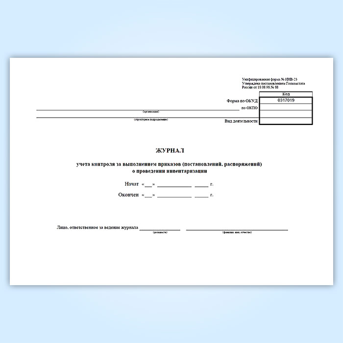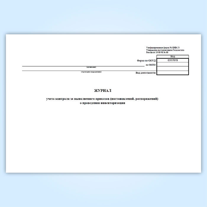 Журнал учета контроля за выполнением приказов (постановлений, распоряжений) о проведении инвентаризации (унифицированная форма ИНВ-23) в Улан-Удэ купить