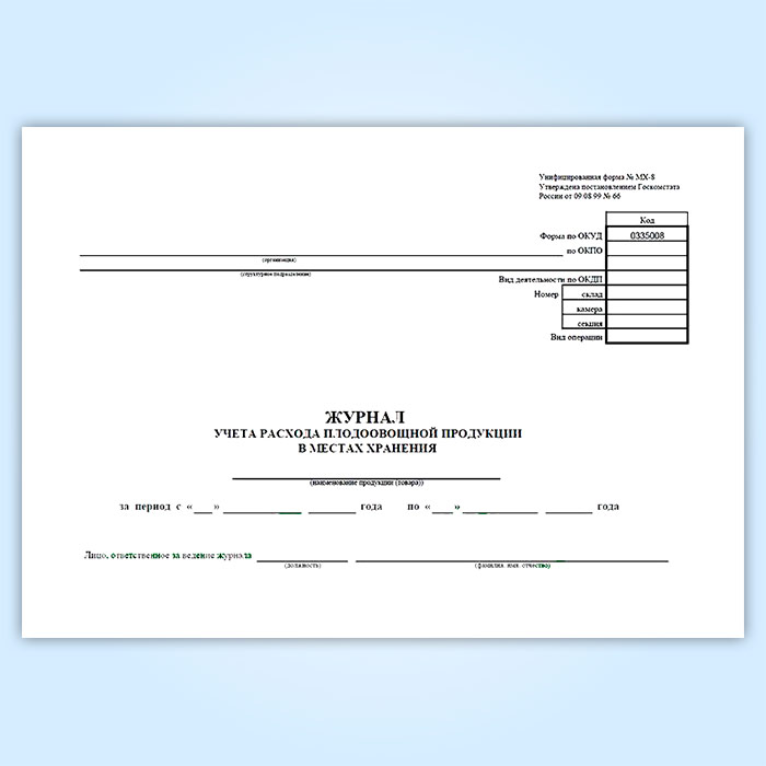 Журнал учета расхода плодоовощной продукции в местах хранения (форма МХ-8) в Улан-Удэ купить