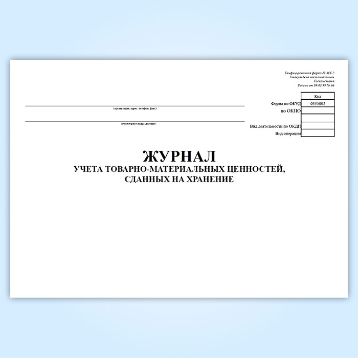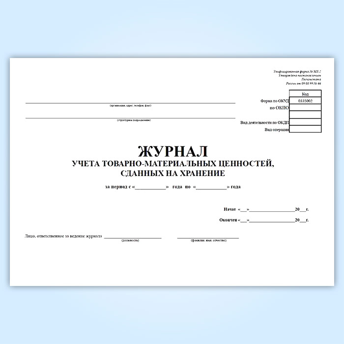 Журнал учета товарно-материальных ценностей, сданных на хранение (форма № МХ-2) в Улан-Удэ купить