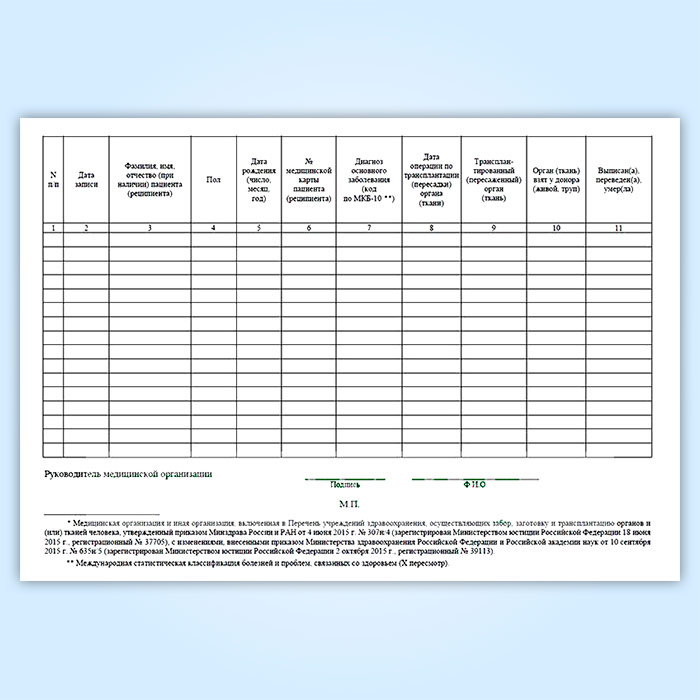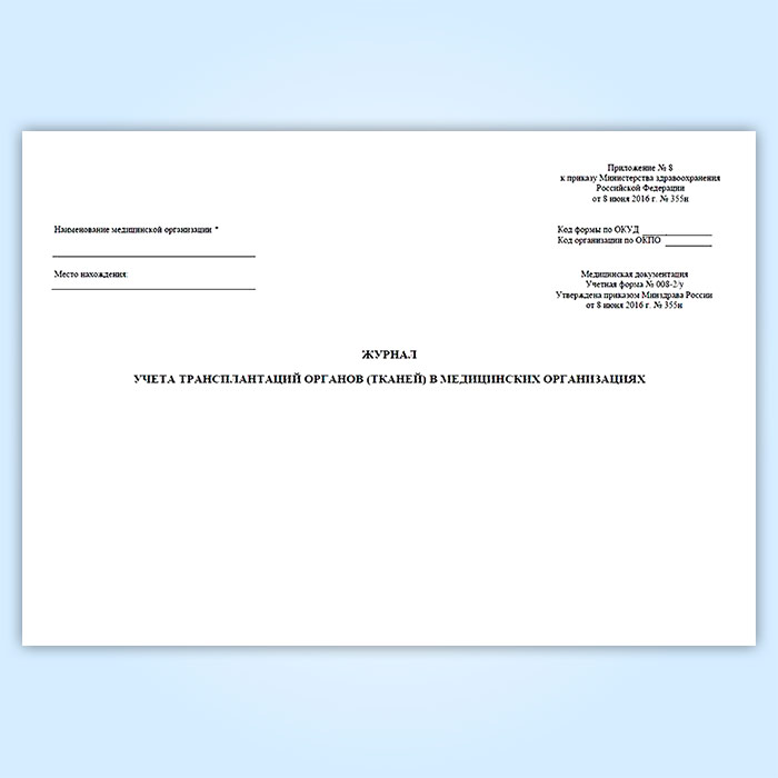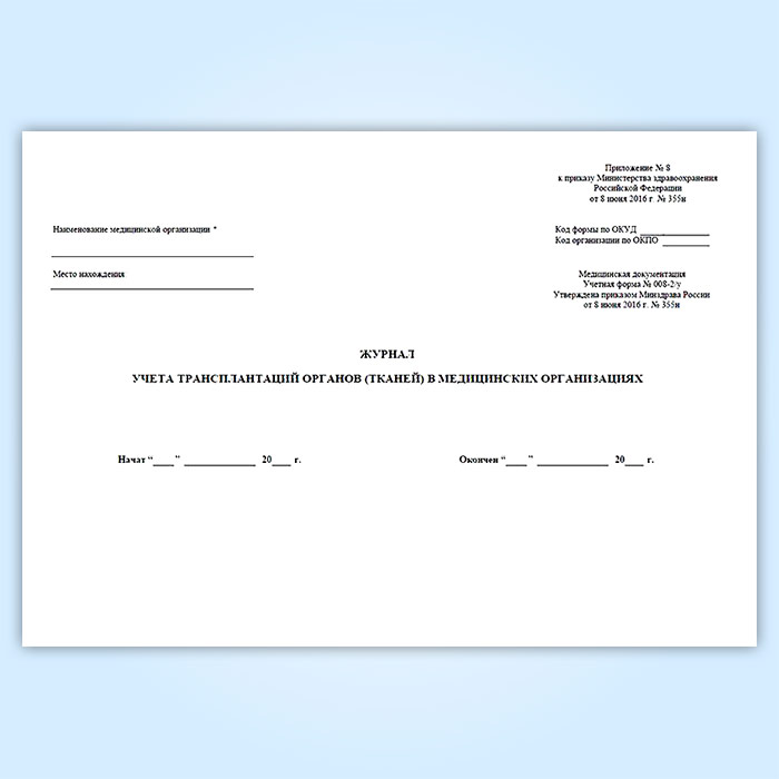 Журнал учета трансплантаций органов (тканей) в медицинских организациях (форма № 008-2/у) в Улан-Удэ купить