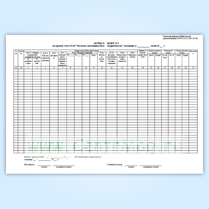 Журнал-ордер № 5 по кредиту счета № 60 «Расчеты с поставщиками и подрядчиками» (сводный) в Улан-Удэ купить