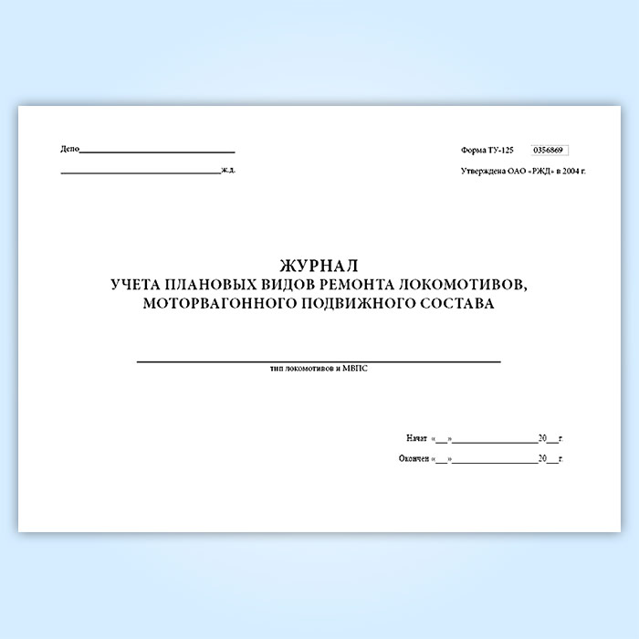 Книга учета плановых видов ремонта локомотивов, моторвагонного подвижного состава (форма ТУ-125) в Улан-Удэ купить