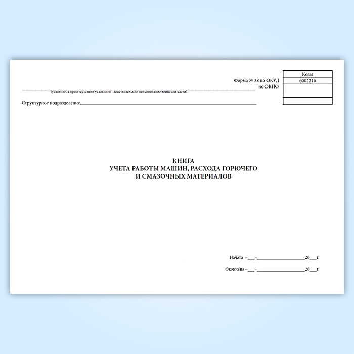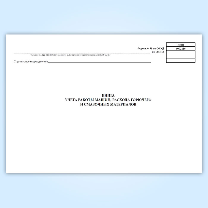 Книга учета работы машин, расхода горючего и смазочных материалов (форма 38, ОКУД 6002216) в Улан-Удэ купить
