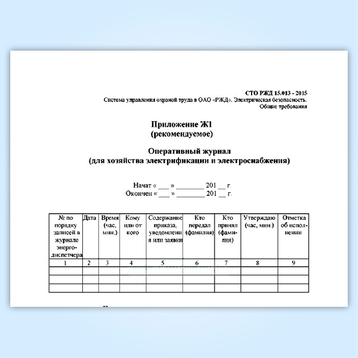 Оперативный журнал (для хозяйства электрификации и электроснабжения) (СТО РЖД 15.013-2015) в Улан-Удэ купить