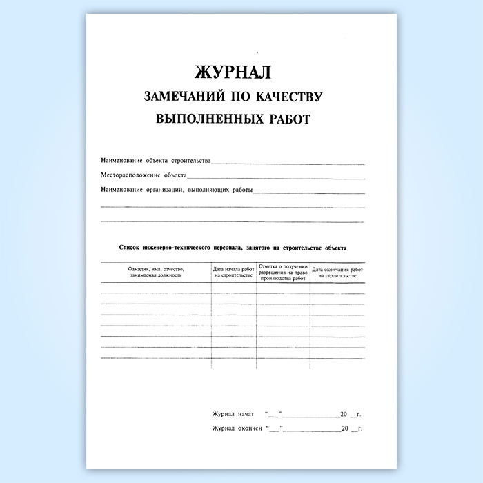 Журнал замечаний по качеству выполненных работ в Улан-Удэ купить