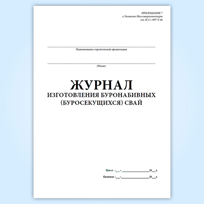 Журнал изготовления буронабивных (буросекущихся) свай в Улан-Удэ купить