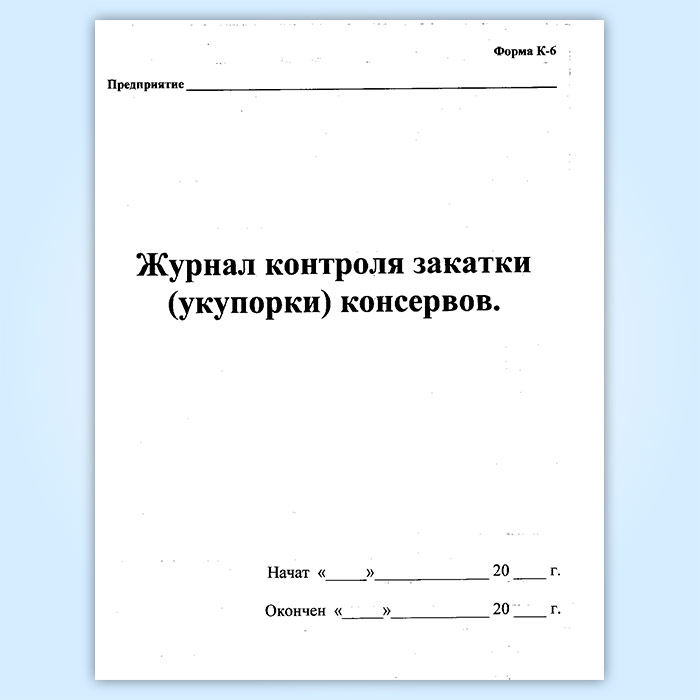Журнал контроля закатки (укупорки) консервов (форма К-6) в Улан-Удэ купить