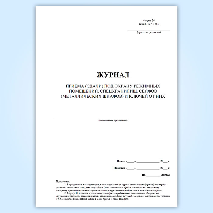 Журнал приема (сдачи) под охрану режимных помещений, спецхранилищ, сейфов (металлических шкафов) и ключей от них в Улан-Удэ купить