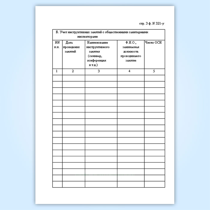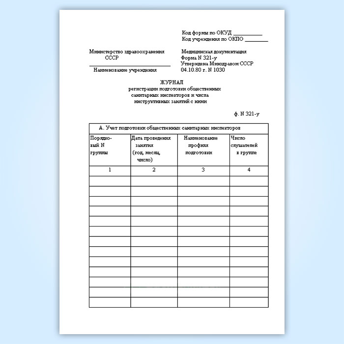 Журнал регистрации подготовки общественных санитарных инспекторов и числа инструктивных занятий с ними (форма № 321-у) в Улан-Удэ купить