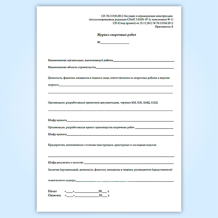 Журнал сварочных работ (приложение к СП 70.13330.2012) в Улан-Удэ купить