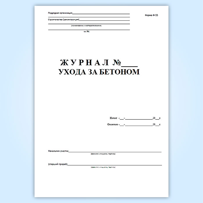 Журнал ухода за бетоном (форма Ф-55) в Улан-Удэ купить